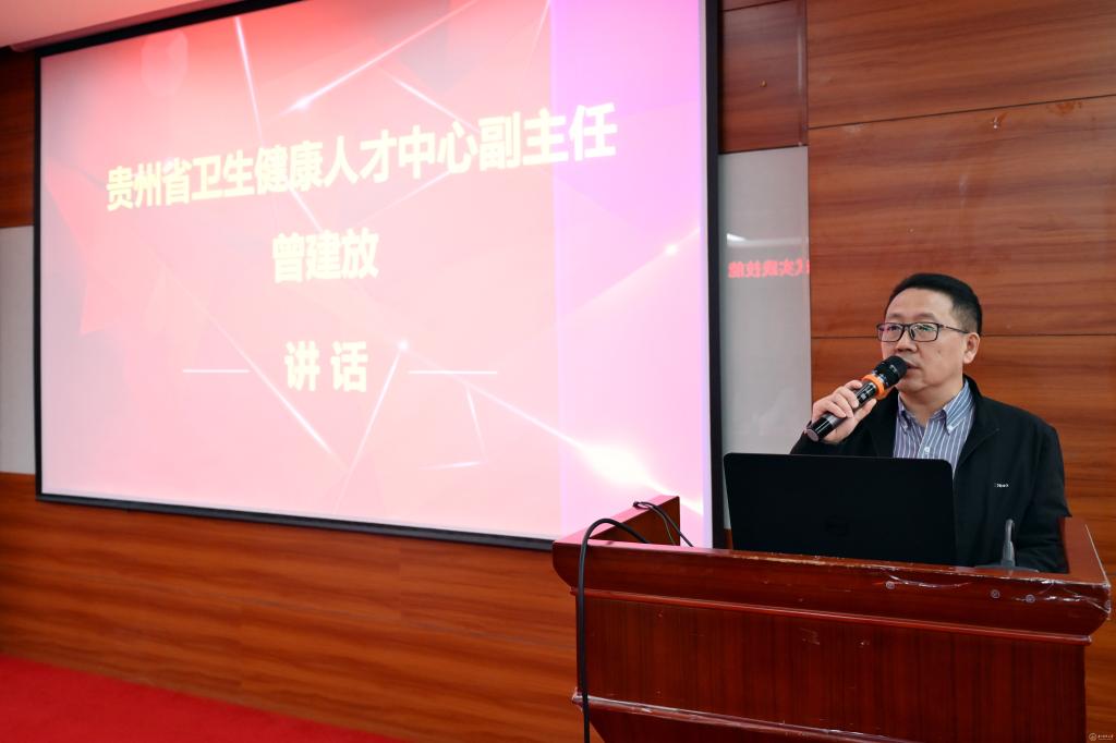 贵州省卫生健康人才中心副主任曾建放,校党委委员、附属医院党委书记李海洋,附属医院副院长、临床医学院副院长陈腾祥,临床医学院党委副书记(正处级)桂晓玲、副处级组织员马燕萍、副院长出良钊,临床技能中心主任王睿、副主任聂蕾、副主任邹丽丹及临床医学院相关工作人员参加培训班开班典礼。