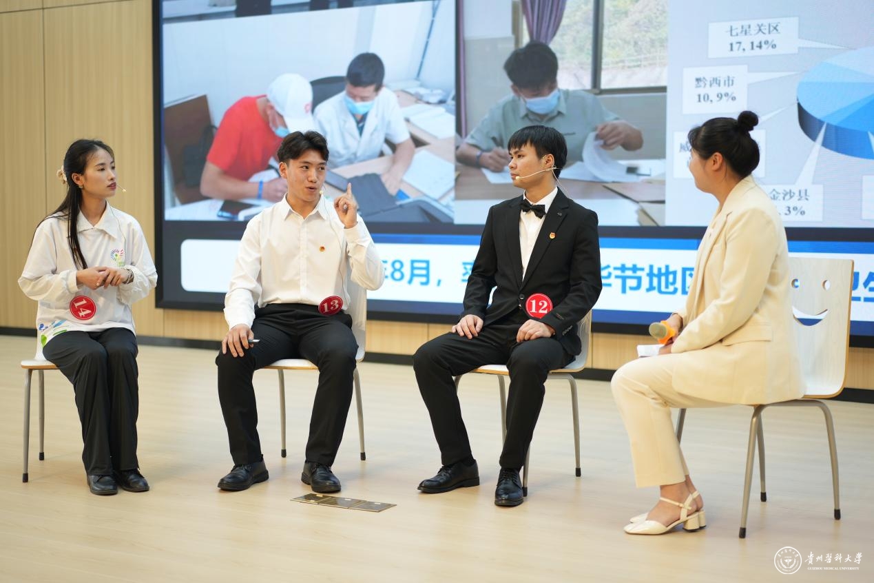 现场氛围热烈、精彩纷呈,他们中有人成绩优异,投身科研创新,多篇论文发表在SCI等核心期刊,并将学术成果转化于产业发展;有人投身志愿服务,支教乡村助力基层教育,研发产品助力乡村振兴,帮助农民增收致富;有人危难时刻见义勇为、舍身救人,用自己的微光点亮他人生命;有人奋力拼搏,突破自我,用亚运会金牌书写家国荣誉……选手们的优秀事迹真实生动,催人奋进,充分展现了贵医学子坚定的理想信念、昂扬的精神面貌、潜心钻研的科研品质、勇于创新的探索精神和乐于奉献的社会责任感。