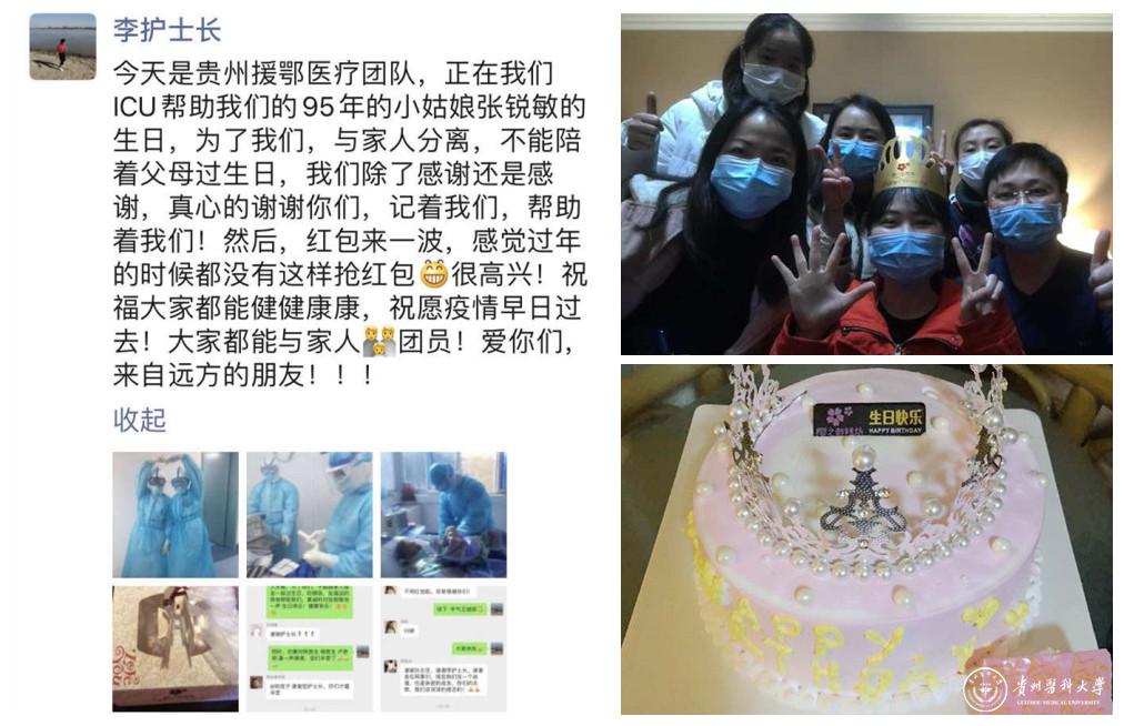 2月13日是她25岁的生日,作为家里的独生女,这是她第一次离开父母单独过生日,当时鄂州疫情严重,工作繁忙,自己都忘记了这件事情。但是,让她万万没有想到的是,鄂钢医院ICU病房的李信芳护士长却是一个有心人,记住了她的生日,在鄂州封城的情况下,硬是千方百计给她觅来一个生日蛋糕,并在微信朋友圈说道:“今天是贵州援鄂医疗团队,正在我们ICU帮助我们的95年的小姑娘张锐敏的生日,为了我们,与家人分离,不能陪着父母过生日,我们除了感谢还是感谢,真心的谢谢你们”。这是一份特殊的生日礼物,代表了湖北医务工作者对全国援鄂医务队员的敬意,让张锐敏度过了她25年来最有意义的一次生日。然而,她并没有觉得这是理所应当,而是被李护士长的真情深深感动,心里暗暗发誓,一定要加倍努力,拯救更多的患者。赠人玫瑰,手留余香,小小年纪的张锐敏是一个懂得感恩的女孩儿。