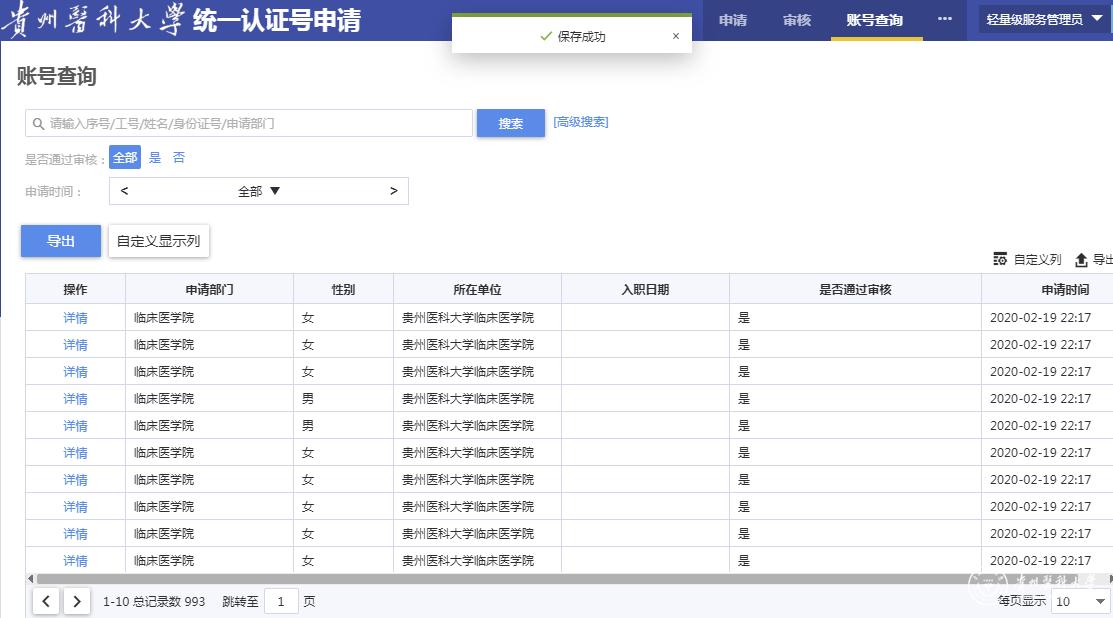 2月12日,为确保各附属医院任课教师使用雨课堂进行网上教学,提前策划定制开发“统一认证号”申请平台,经过一个星期的努力,不断测试优化,在2月18日得以上线使用,目前已成功申请包括附属医院、第二附属医院、第三附属医院、附属白云医院等993个账号。