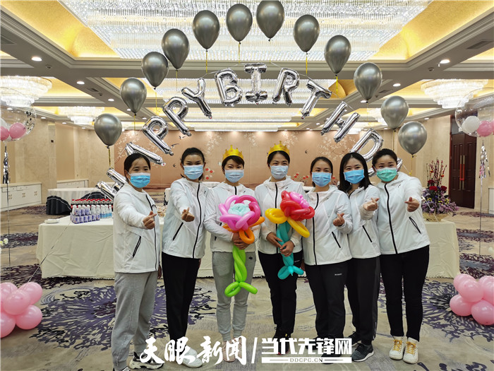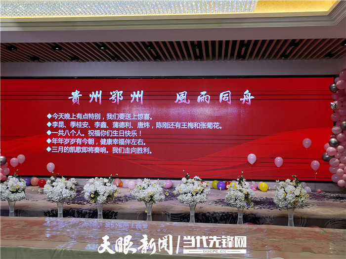 说意义非凡,是鄂州酒店特别有心,专门提出举办生日会,并布置了会场、鲜花、气球、蛋糕、舞台等,在这样一个特殊时期,让我们深深感受到了贵州人民和鄂州人民风雨同舟、齐心协力、并肩作战的深情厚谊。